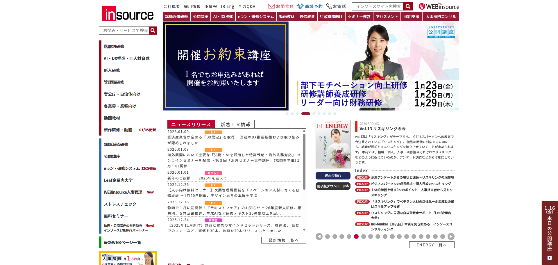 | 新任管理職研修 | (株)インソース | 新任向け|公開講座No.1。基礎知識を網羅。 | 集合/eラーニング | 1名 3万円台〜(公開講座) |